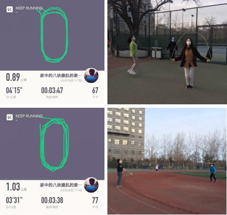 Five之“运动打卡”——疫情期间,员工们的身体健康是第一要务。为鼓励“彩虹班”的员工加强体育锻炼,公司为员工们提供了跳绳、羽毛球和足球等运动器材。班主任多次组织员工在小操场进行户外运动,同学们每天也积极将运动的照片或跑步轨迹上传到班级群中。