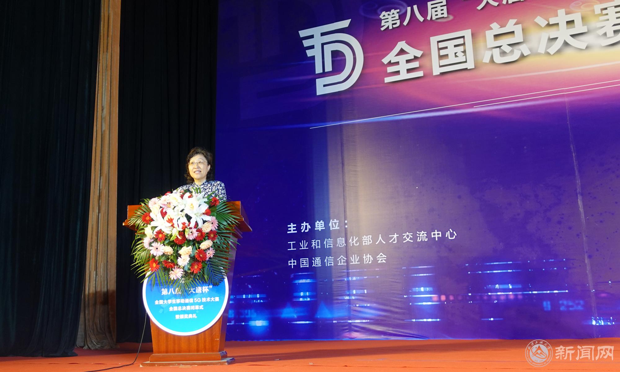 栗苹副董事长出席闭幕式暨颁奖典礼并致词。她感谢全国兄弟院校对比赛的积极支持和热情参与,肯定了第八届大唐杯基于5G“真实设备、真实场景、真实问题”的特色,她表示公司将始终支持产教融合的实践竞赛育人模式,并期待“以赛促教、以赛促学”的校企联合培养创新工程人才的方式再结硕果。