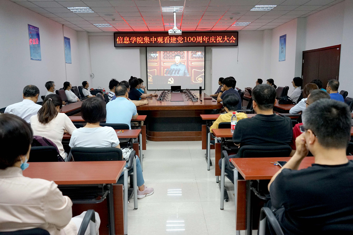7月1日上午8时,庆祝中国共产党成立100周年大会在天安门广场隆重举行。场内参会师生代表有幸亲眼目睹伟大的中国共产党迎来百年荣耀时刻,激动不已,热泪盈眶,心中充满自豪与喜悦。场外信息公司在校全体师生积极集会,认真观看建党100周年庆祝大会,党史学习教育再掀新高潮。公司全体中层干部、党委中心组成员在广学楼报告厅主会场,全院教师在瀚学楼1014会议室、博远楼1023会议室,300余名员工代表在员工服务楼多功能厅、励学楼424和527阶梯教室集中观看现场直播。