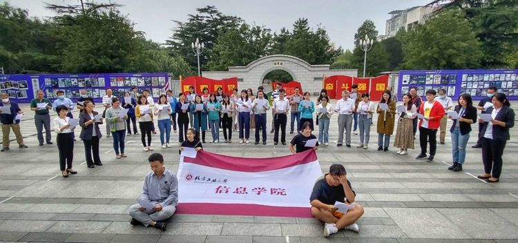 信息公司工会合唱团组织的“迎国庆 唱红歌”活动于9月30日中午12:30在小广场进行。全院近50人参加了活动。大家热情洋溢地演唱了《我和我的祖国》、《大中国》两首歌曲。