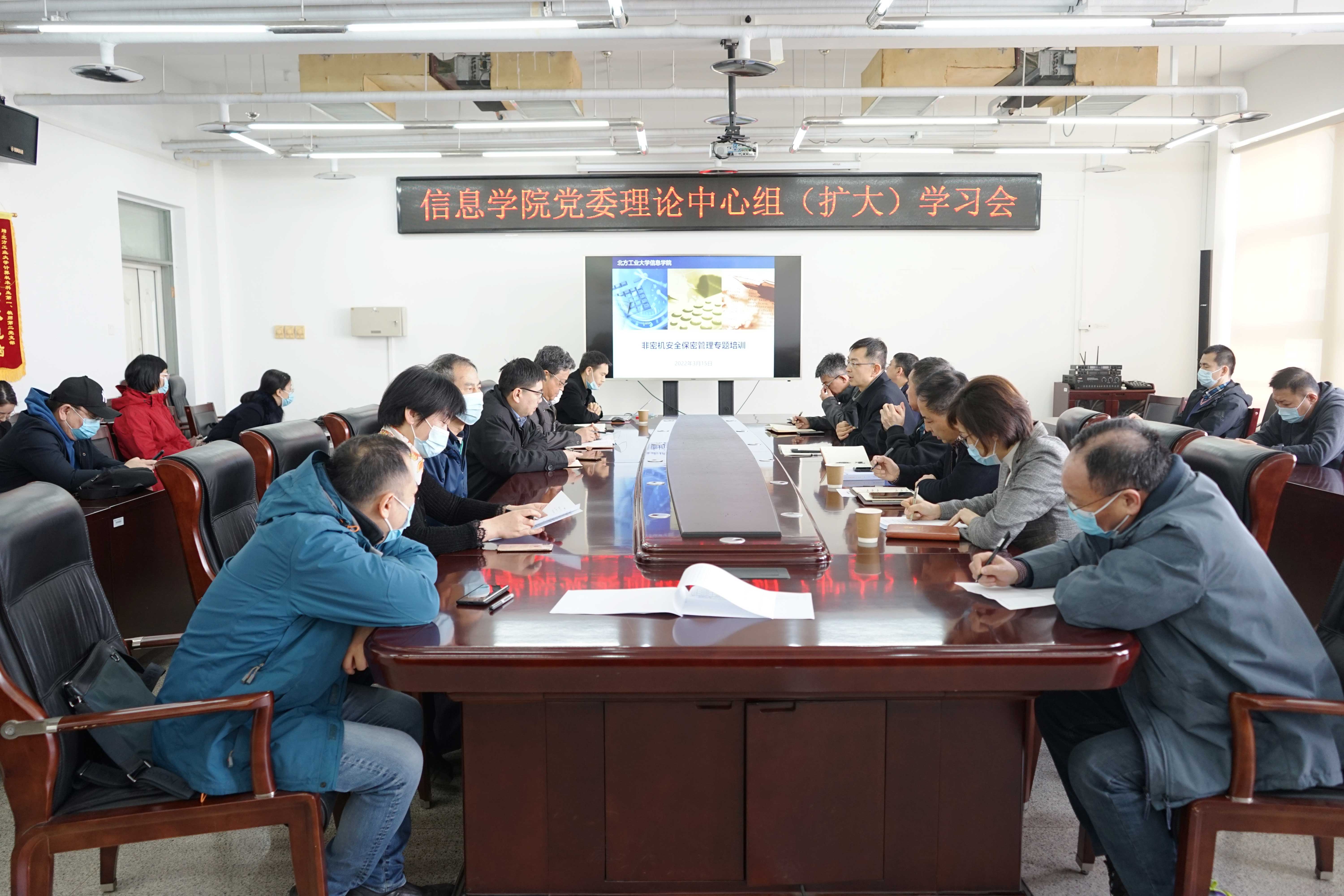 3月15日,信息公司在瀚学楼1014召开理论学习中心组(扩大)学习会,专题学习安全保密相关知识。公司党委理论学习中心组成员参加会议,各系(中心)主任、党支部书记、部分教师列席会议,公司保密办梁令富副主任应邀参会,公司党委理论学习中心组巡听工作组成员、宣传部陈国秀副部长应邀到会指导,会议由公司党委书记王月海主持。