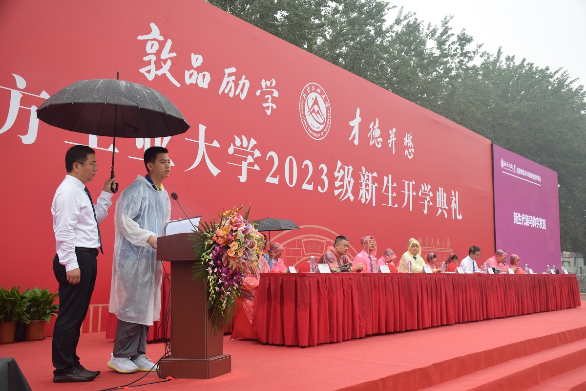 电信20-1班杨畅星同学代表在校员工分享了在校的学习奋斗故事,寄语新同学们顽强拼搏,接续奋斗,收获属于自己的大学青春。计算机实验23班马帅宇同学代表2023级新同学发言,表示今后要不忘初心,读书报国,定义最美好的人生,遇见最美好的自己。