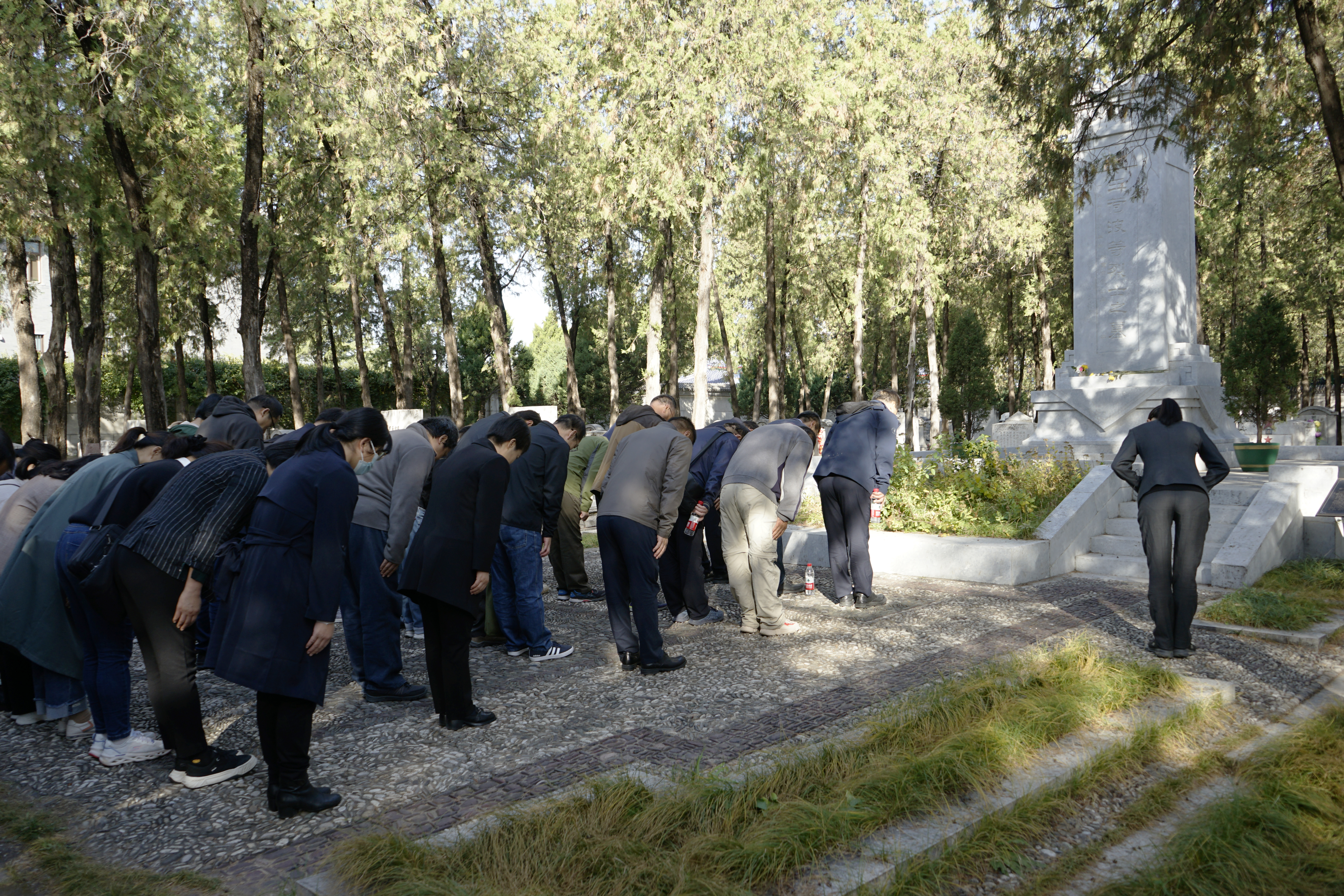 活动中,党员教师们先后来到八宝山革命公墓的王荷波纪念广场、政德主题展览区以及先烈的墓碑进行学习瞻仰活动。在我党早期领导人、首任中共中央监察委员会主席——王荷波同志的纪念碑前,大家深刻领悟王荷波同志追求真理、坚定信仰、勇于担当、清正廉洁的革命生涯,并全体鞠躬致敬。在“明大德”“守公德”“严私德”三个政德主题展览区,大家先后聆听了朱德元帅舍弃高官厚禄、万里找党终如愿并献身革命事业的感人故事,学习了被毛主席评价为“对中国革命有大功”的徐海东的动人事迹、以及开国大典上着一袭旧土布长衫彰显朴素本色的张澜、中国社会主义经济建设的开创者和奠基人之一的陈云同志、被誉为“我们党的骆驼,中国人民的骆驼”的任弼时同志、坚韧不屈秉公为政,为信仰而苦,为信仰而死,苦得其所,死得其所的帅孟奇、“党内红管家”李富春等老一辈无产阶级革命家为党和人民无私奉献、严于律己清正廉洁的感人事迹和崇高品德。在烈士墓区,大家认真学习了革命先烈们在峥嵘岁月中的点滴过往,详细了解早期党组织创建、发展和斗争的光辉历程,一碑一故事,一墓一人生,最后向革命先烈肃穆默哀,深深鞠躬。