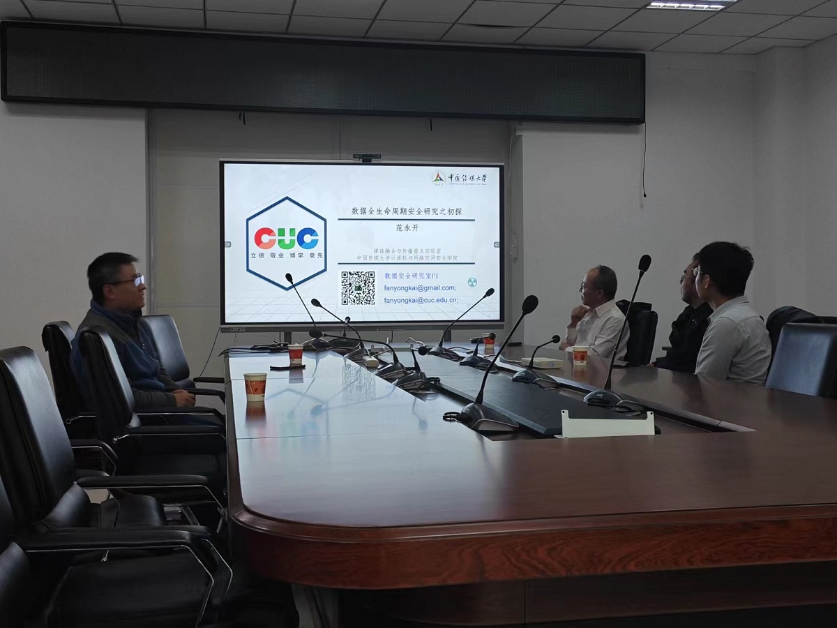 11月6日下午,应信息公司邀请,南开大学教授、博士生导师汪定、中国传媒大学网络与空间安全公司教授姜正涛和中国传媒大学网络与空间安全公司教授范永开在博远楼1023来公司开展学术报告,分别题为“如何评估口令强度评测算法”,“数据全生命周期安全研究之初探”以及“可搜索加密技术与算法”。通信工程专业责任教授张键红主持,通信工程专业30余名研究生参加。