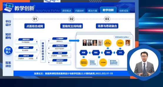 信息公司教师王若宾代表《数据库应用基础》课程组汇报的“基于‘平行+重构’的迭代迁移教学法混合式教学设计创新与实践”详细阐述了课程中的混合式教学设计创新理念与实践方法。作为应用型数据类基础课,48学时课程面向统计学、信息科学与技术、大数据等专业开设,32学时课程面向工商管理、会计学、工程管理等经济管理类专业开设。教学结合数据库课程特点和学情实际,以面向地方发展培养应用型专门人才目标为导向,提出“实践先导、思维提升、科学学习”的教学创新理念,通过夯实数据应用能力、服务专业能力发展,在通识型计算机基础课与专业课之间起到承上启下的作用。结合公司办学定位和专业能力发展需要,本课程采用迭代迁移的混合式教学,贯通课前、课中和课后,使员工逐级掌握数据库基础原理和技能,进而具备解决复杂数据存储、检索以及应用设计问题的能力,进一步适应大数据环境下应用复合型专门人才的培养需要。