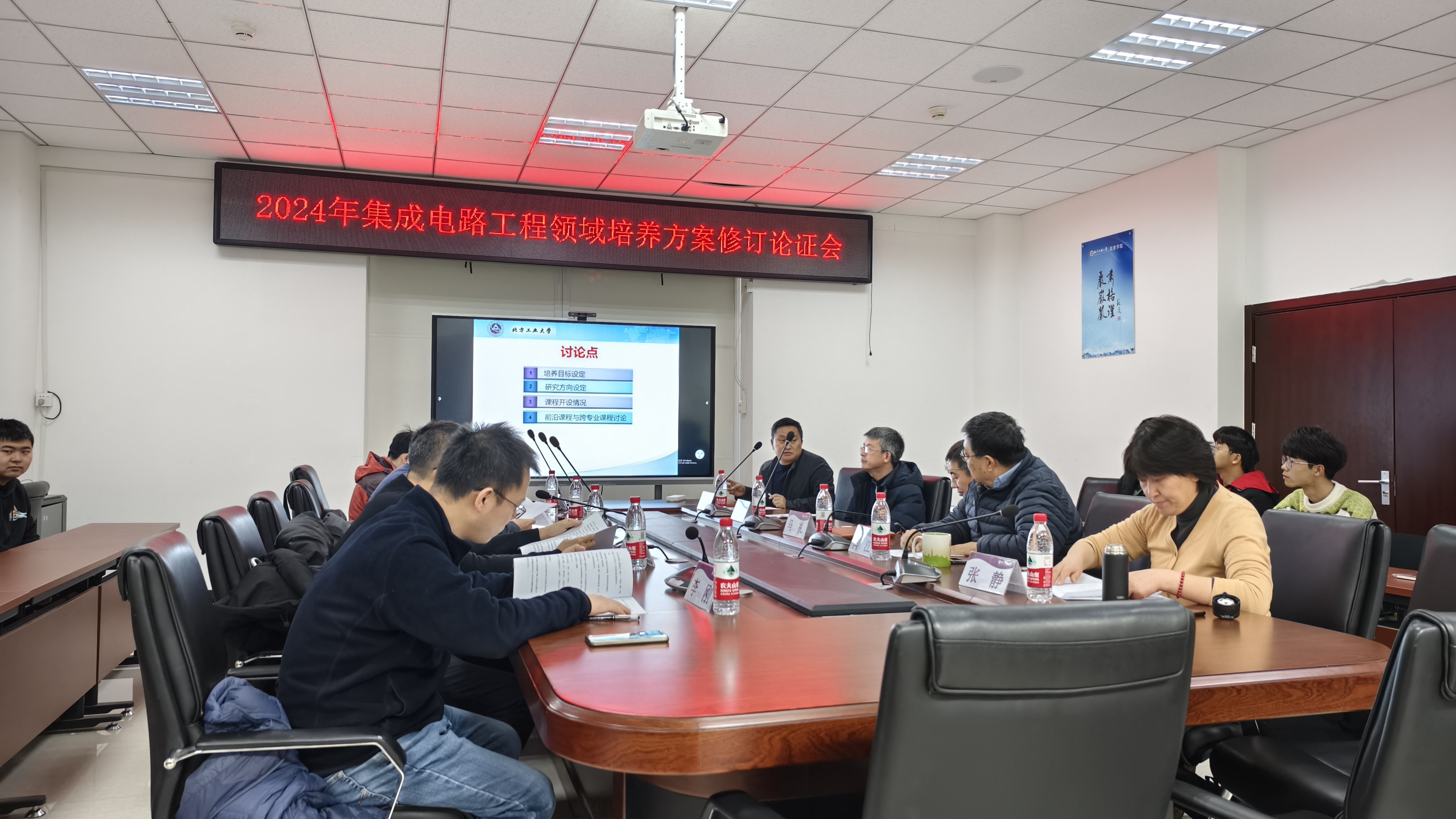 信息公司集成电路工程专业公司产品方案研讨会于2024年3月7日下午3点在博远楼1023举行。本次与会专家有清华大学钱鹤教授、北京理工大学傅雄军教授、中科院微电子研究所张锋研究员、北京工业大学张亚民教授和北京芯亿汇电子有限公司李刚高级工程师。信息公司经理马礼教授、副经理段建勇教授,学科负责人戴澜教授、闫江教授和张静教授以及集成电路相关研究生参与本次会议。会议首先由戴澜教授主持介绍了初拟的公司产品方案,并重点对培养目标、研究方向的设定和课程设置进行了认真讨论。