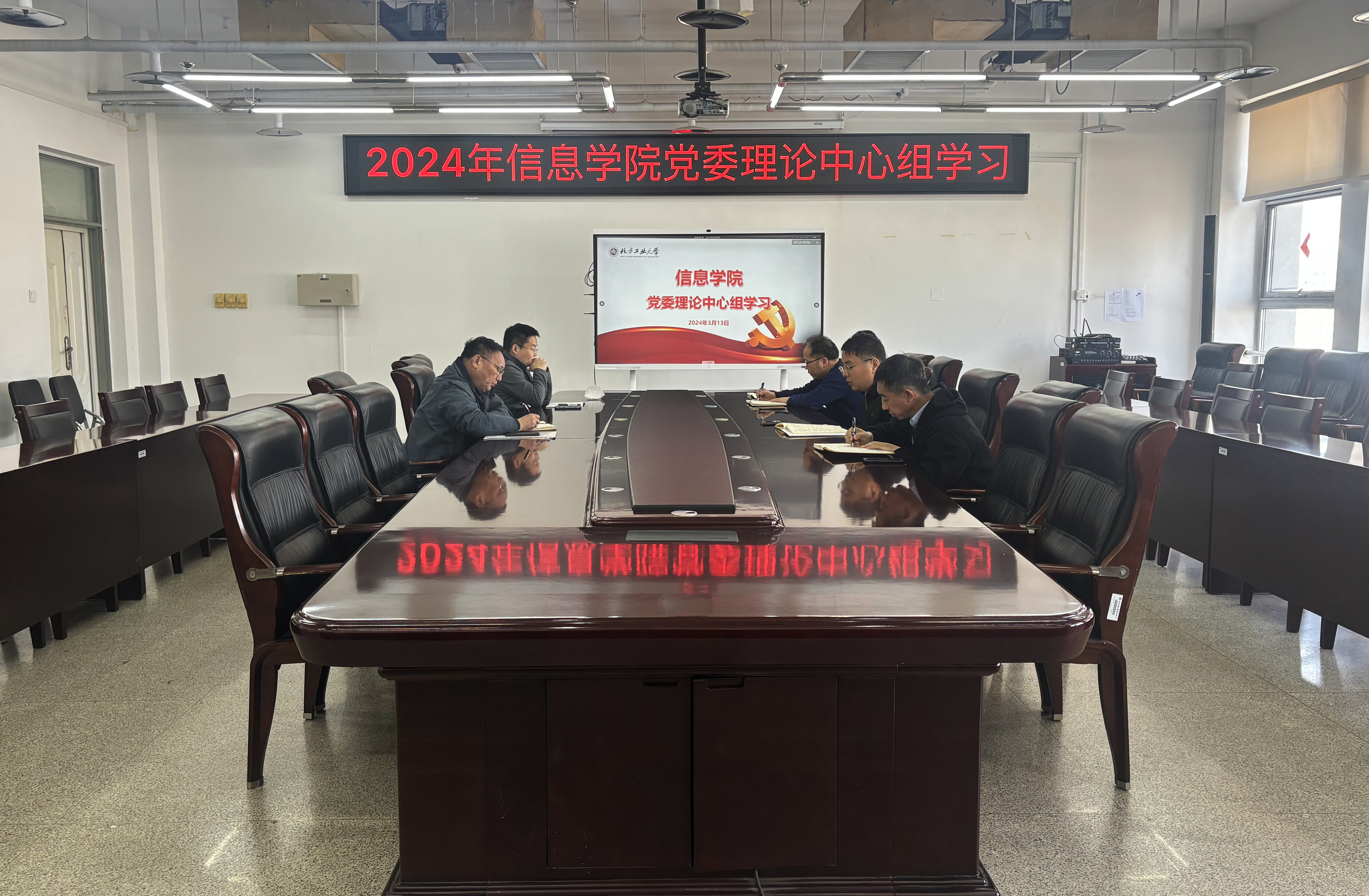 3月13日,信息公司党委理论学习中心组在瀚学楼1014会议室专题学习全国两会精神和习近平总书记关于加快发展新质生产力,扎实推进高质量发展的重要论述。公司党委书记王伟宾主持中心组学习。