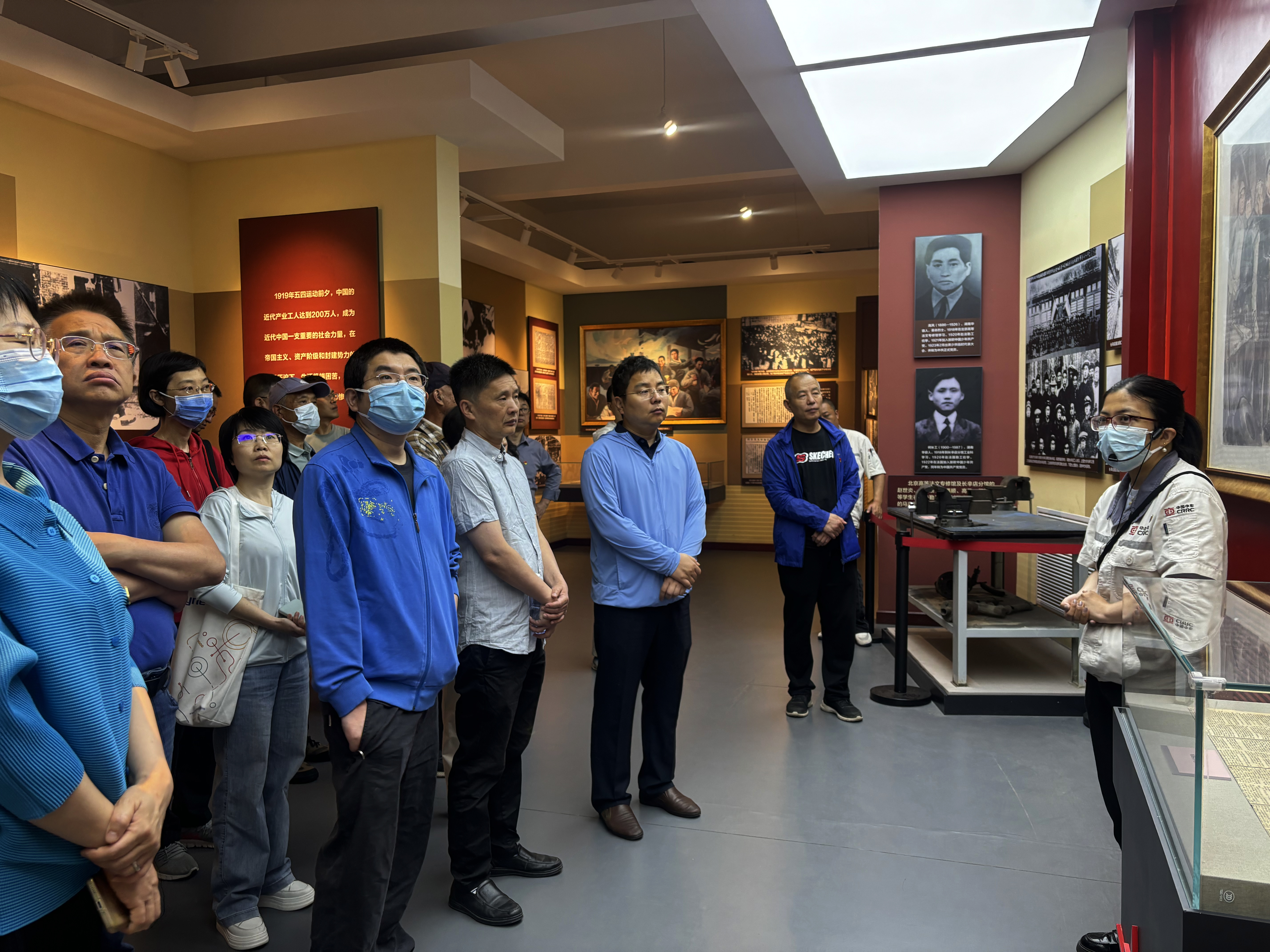 在讲解员的带领下,我们走进“北方的红星——长辛店与中国工人运动”专题展览馆。大家通过一件件实物、一张张照片重温长辛店铁路工人参加五四运动、创办长辛店劳动补习公司、创建长辛店工会、建立工人中的党组织、开展长辛店铁路工人罢工以及参加京汉铁路工人大罢工等革命事迹,详细了解中国共产党领导北方工人运动的光辉历史,感受先烈们“天下兴亡、匹夫有责”的担当精神,百年前设计独特的工会会员徽章、简洁有力的二七歌谣、“二七惨案”发生时老工人身穿的衣帽、传递工人运动信号的铜制汽笛等重要文物给全体党员留下了深刻的印象。
